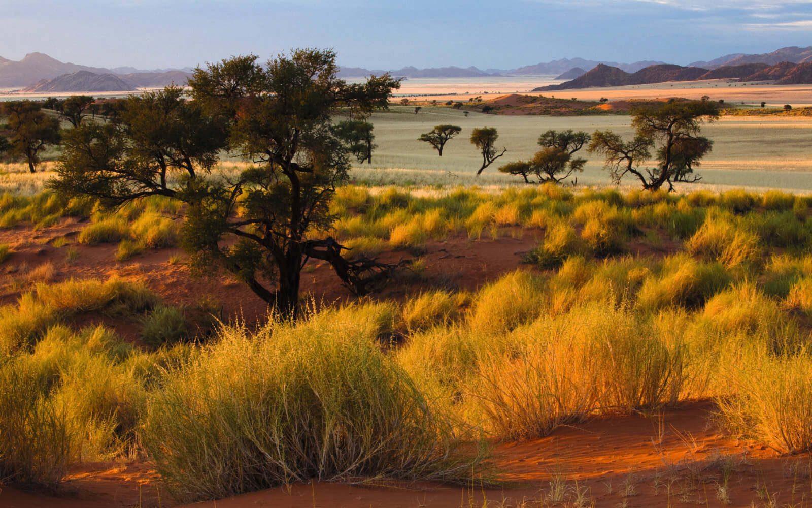 Als ehemalige deutsche Kolonie versprüht eine Rundreise in Namibia einen ganz besonderen Charme. In der Hauptstadt Windhoek spazieren Sie durch die Gärten des Tintenpalastes und legen einen Stopp in der hiesigen Christuskirche ein. Kolonialcharme weht Ihnen zwischen den Häuserfronten Swakopmunds entgegen – in der Namib Wüste hingegen der warme Wüstenwind. Die gigantischen Dünenkämme zählen zum UNESCO-Weltnaturerbe und entfalten ihre vollkommene Faszination insbesondere, wenn es dunkel wird. Beim Blick in den tintenblauen Sternenhimmel über der weltweit ältesten Wüste offeriert Ihnen eine Rundreise in Namibia das pure Afrika in vollendeter Schönheit.