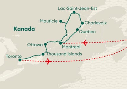 Den Westen der USA entdeckenHier schlägt das Herz unbeirrt im Takt von Mutter Natur! Gipfel, von Schnee bedeckt, beeindruckende Wasserfälle, dicht bewachsene Regenwälder und kilometerlange Strände – hier kommen Outdoor-Fans auf ihre Kosten. Voll im Trend liegen auch Kanadas moderne Grossstädte wie Vancouver, Montreal oder Toronto. Die Kanadier sind bekannt für ihre offene und freundliche Art. Die Vorzeichen für eine unvergessliche Kanadareise stehen gut.
