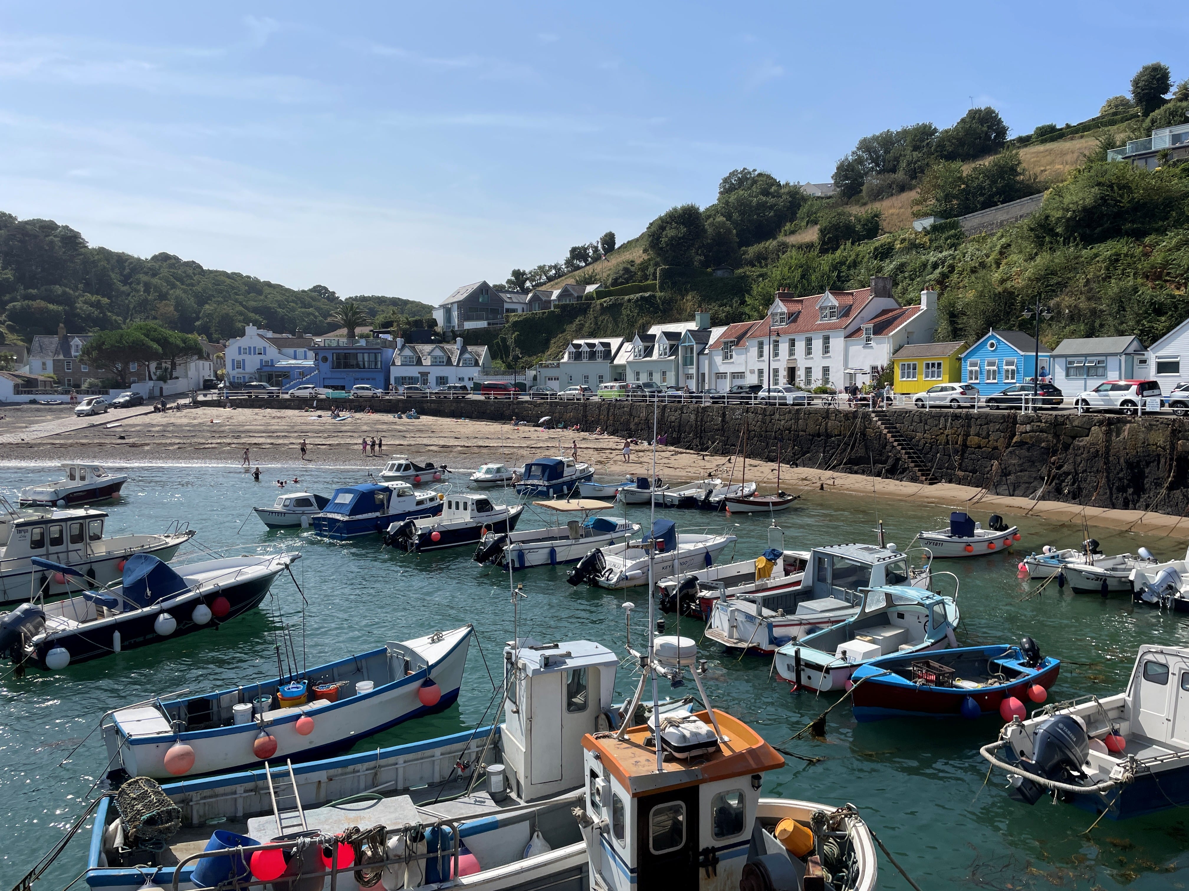 Zum Abschluss des Tages halten wir im Hafenörtchen Rozel, wo wir einen traditionellen Cream Tea mit Scones, Schlagrahm und Tee geniessen dürfen.