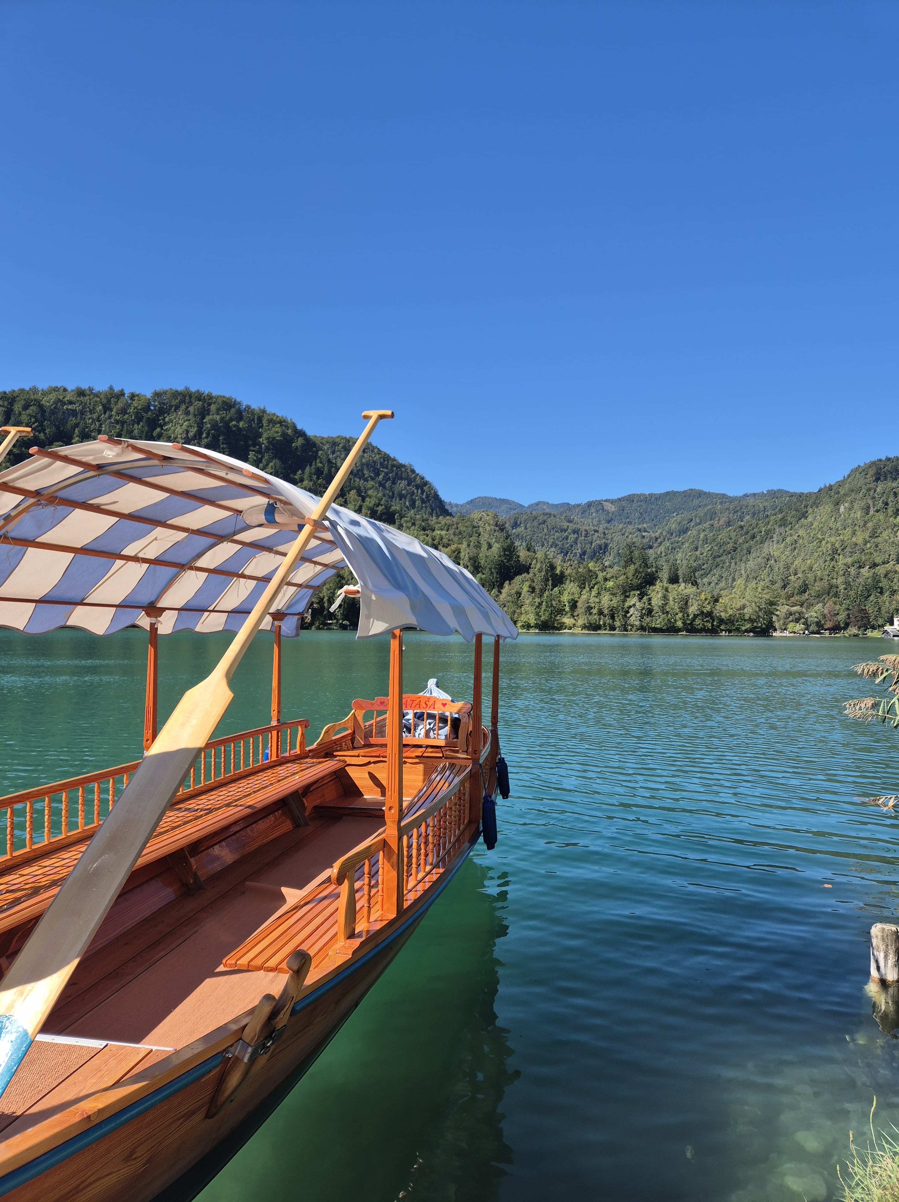Auf einem traditionellen Pletna-Boot werden wir von einem Schiffer zur idyllischen Bleder Insel gerudert. Der Blick über den funkelnden Bleder See und die eindrucksvolle Bergkulisse ist unvergesslich. Am Mittag darf die Spezialität der Region nicht fehlen: die Bleder Cremeschnitte.