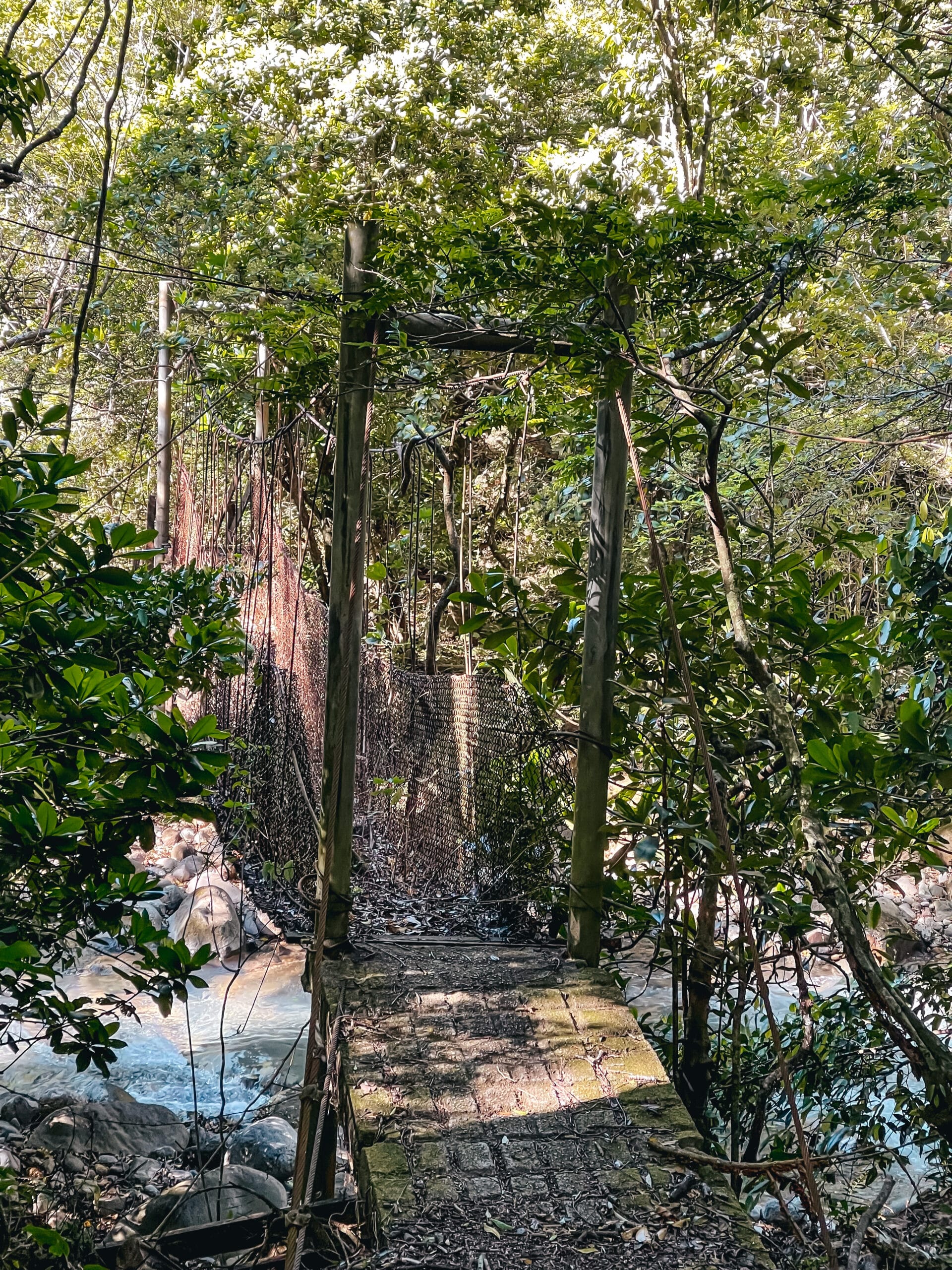 Alles wirkt menschenleer. Wir spazieren gemütlich den wirklich gut markierten Pfad entlang. An manchen Stellen siehst Du die alten, schon recht verfallenen Pfade oder alte Hängebrücken, die vielleicht schön zum Ansehen sind, ich Dir aber für die Überquerung nicht empfehle.
